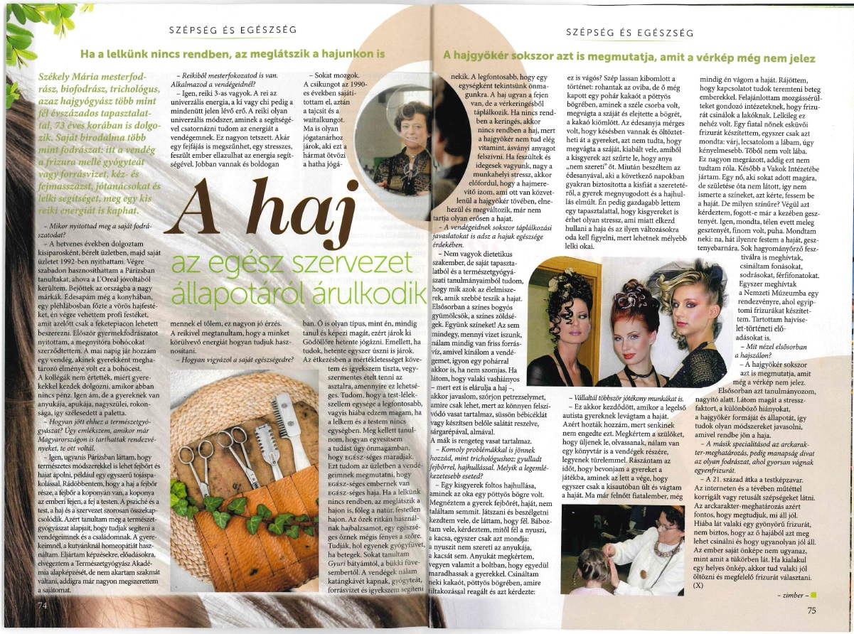 Sokan még ma is azt gondolják, elegendő a hajat megmosni, vágni, festeni; a fő, hogy szép legyen a frizura és jól álljon.Több évtizedes pályafutásom során egyre többet és többet tudtam meg a hajról, sőt, azt is, hogy mennyi mindent megállapíthatunk a hajból! Mert a hajszál sok mindent elárul rólunk. Például az erős dohányosok hajszálában jóval kevesebb a felszívott tápanyag, mert a nyaki vérerek jobban beszűkülnek. De a hajszál utal korunkra, egészségi állapotunkra, táplálkozási szokásainkra. Másfél évtizeddel ezelőtt kezdtem foglalkozni hajdiagnosztikával, mert gyakorta fordultak hozzám olyan vendégek, akiknek hullott a hajuk, korpásodott a fejbőrük, vagy más egyéb haj-problémával küszködtek. Mielőtt bármit is kezdtem volna a hajukkal, hosszan elbeszélgettem velük egészségi-életviteli gondjaikról, s tanácsoltam, hogy keressenek fel szakorvosokat, és végeztessenek el különbözõ vizsgálatokat. Jónéhány rejtett vagy lappangó betegséget sikerült így megtalálni. Mindez azt igazolta, hogy számos fontos összefüggést segít a haj kideríteni.
